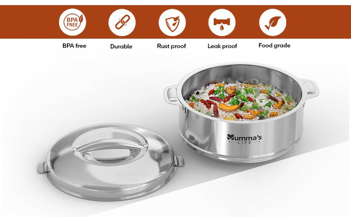 - Mumma's LIFE Hot Box | Stainless Steel Casseroles | Hot Boxes for Kitchen | Hot Food, Easy to Store| Hygiene | Odourless (Silver)
