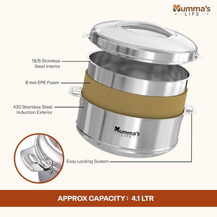 Mumma's LIFE Hot Box | Stainless Steel Casseroles | Hot Boxes for Kitchen | Hot Food, Easy to Store| Hygiene | Odourless (Silver)