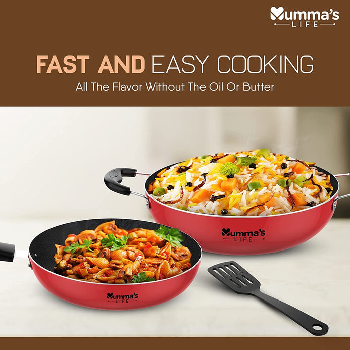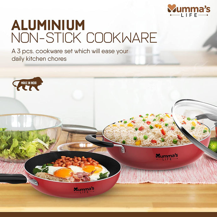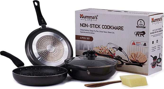 - Mumma's LIFE- Non Stick Aluminium Cookware Set 24cm with 3MM Thickness, Dosa Tawa, Kadai with Glass Lid, and Frying Pan Set of 6 Piece