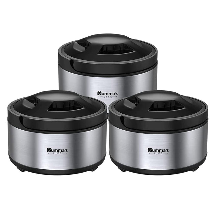Mumma's LIFE Stainless Steel Thermosteel Casserole Set of 3 for Kitchen| hot Boxes for Kitchen, Up to 2 Hour|