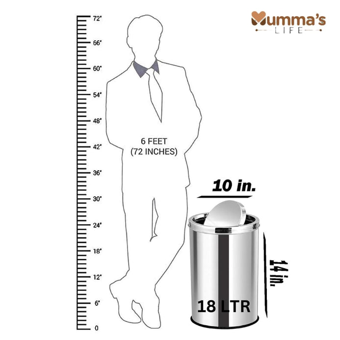 - Mumma's LIFE Stainless Steel Swing Dust Bin with Lid| Garbage Bin, Trash Can for Home, Kitchen, Washroom, Bathroom and Offices