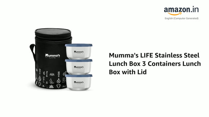 - Mumma's LIFE Stainless Steel Lunch Box 3 Containers Lunch Box With Lid (Black)
